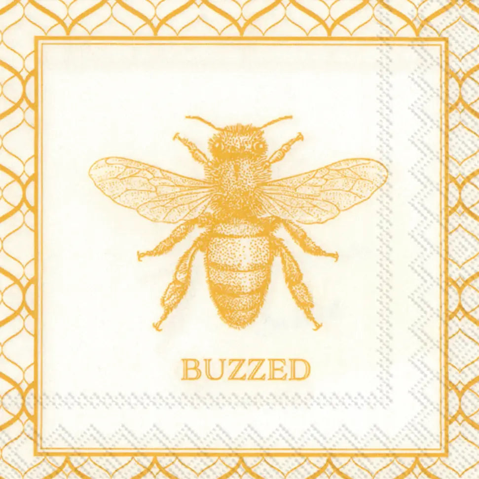 A little wit, a lot of charm. These Buzzed cocktail napkins feature a golden bee illustration with elegant detailing perfect for holiday hosting, gifting, or adding Sweet Briar flair to your next gathering.