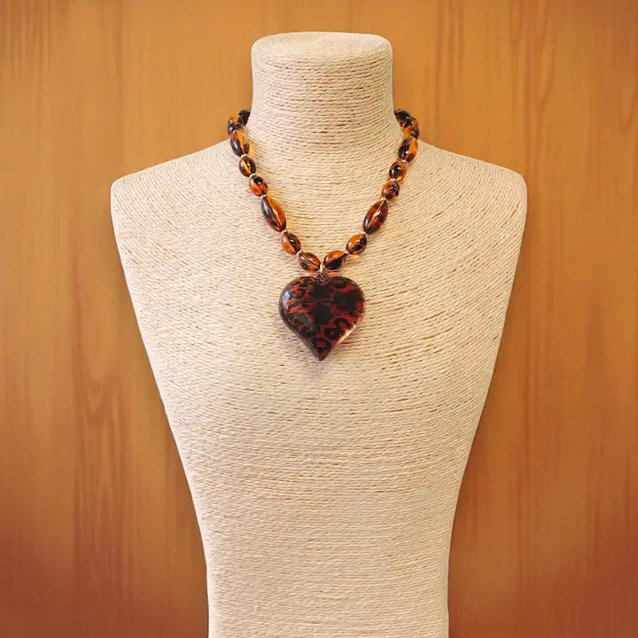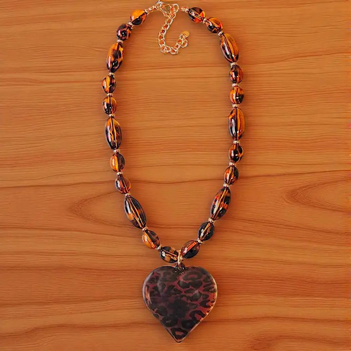 Make a bold statement with this Beaded Tortoise Shell Heart Necklace, where artistry meets timeless elegance. Hand-knotted with precision, this piece features rich tortoise-shell beads and a stunning sculpted heart pendant, the perfect accessory to add a touch of sophistication to your Sweet Briar style.