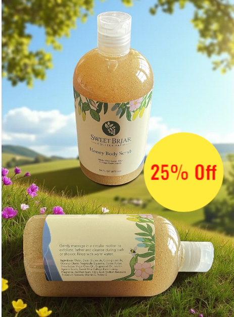 Polish, purify, and pamper with our rich exfoliating scrub made with shea butter, cocoa butter, and real honey harvested right from the Sweet Briar College Farm apiary. Gently buffs away dry skin while nourishing with nature’s golden gift.