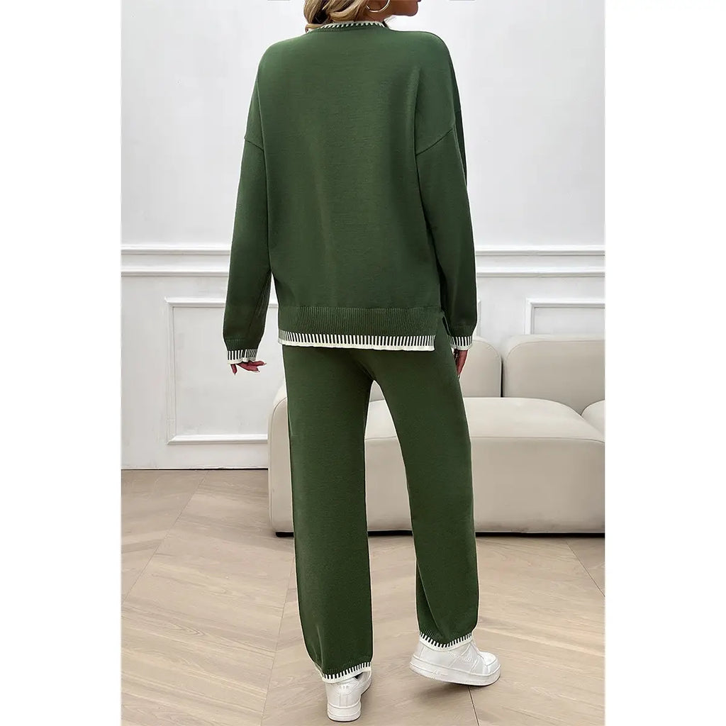 โข Olive color-block knit set (top + pants)