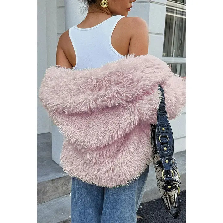 Wrap yourself in cozy sophistication! This solid long-sleeved faux fur jacket combines elegance with comfort. Perfect for cool evenings or stylish outings, its plush texture and chic silhouette elevate any outfit.