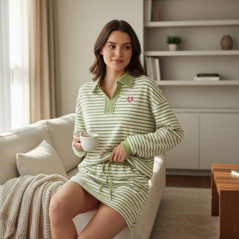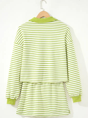 Cozy meets polished in this effortlessly chic 2-piece set. The soft green-and-white striped pullover pairs perfectly with a matching lace-up skort (with built-in shorts!), giving you comfort, coverage, and campus-casual style in one look. Finished with the Sweet Briar Vixen emblem for the perfect SBC touch.