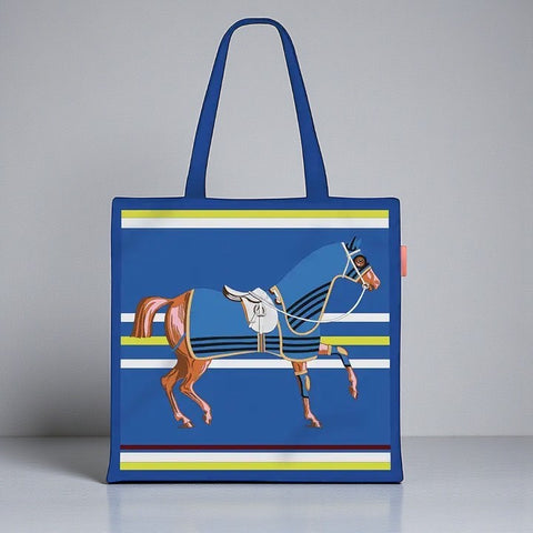 Bold, graphic, and effortlessly chic, this striped warhorse canvas tote makes a statement wherever you go. Featuring a striking equestrian illustration and classic stripes, it’s the perfect blend of fashion and function for everyday errands, classes, or weekend adventures.