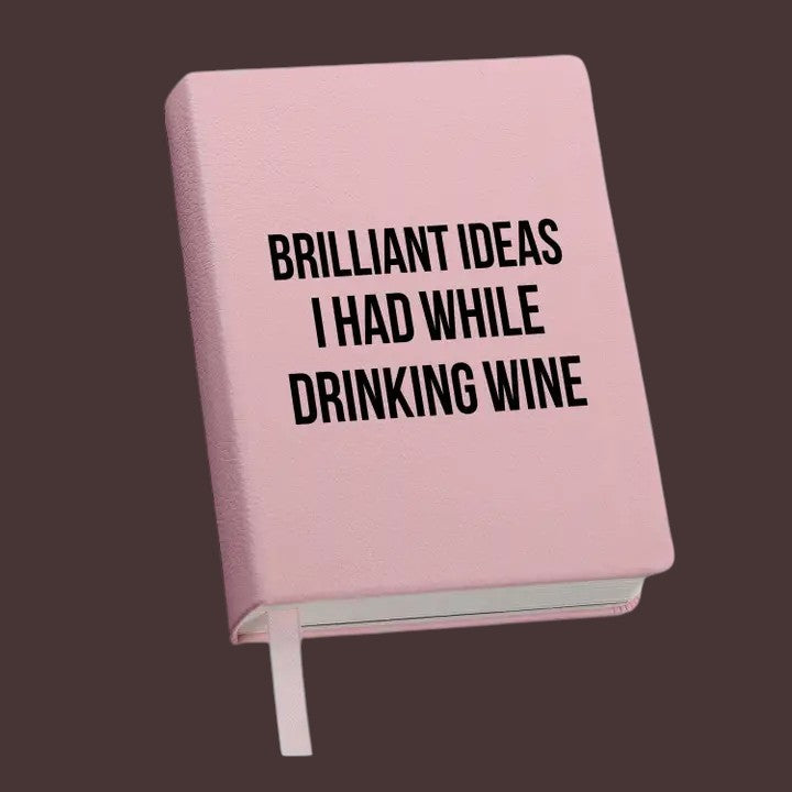 Capture every brilliant idea with this witty leather-lined journal. Featuring the phrase “Brilliant Ideas I Had While Drinking Wine” on the cover, this notebook blends humor with practicality. Perfect for jotting down thoughts, notes, or creative sparks, it makes a thoughtful gift for writers, dreamers, or anyone who enjoys a touch of fun with their journaling.