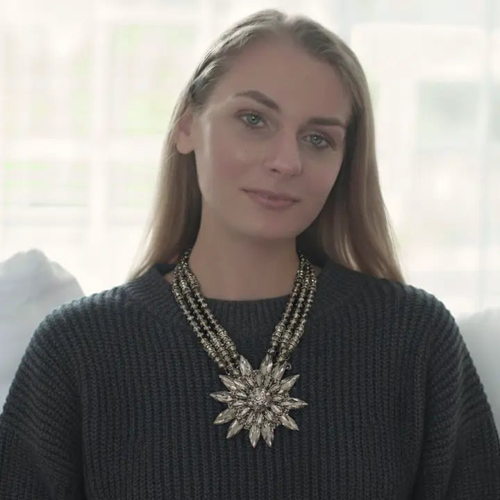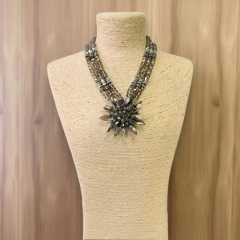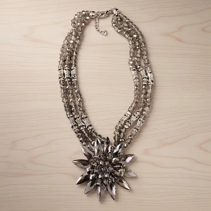 Shine bright this season with the Silver Snowflake Pendant Necklace, a bold, hand-crafted statement piece that radiates winter elegance. Featuring faceted gunmetal beads and a stunning oversized snowflake pendant, this necklace captures the essence of frosty glamour with a boho-luxe twist.