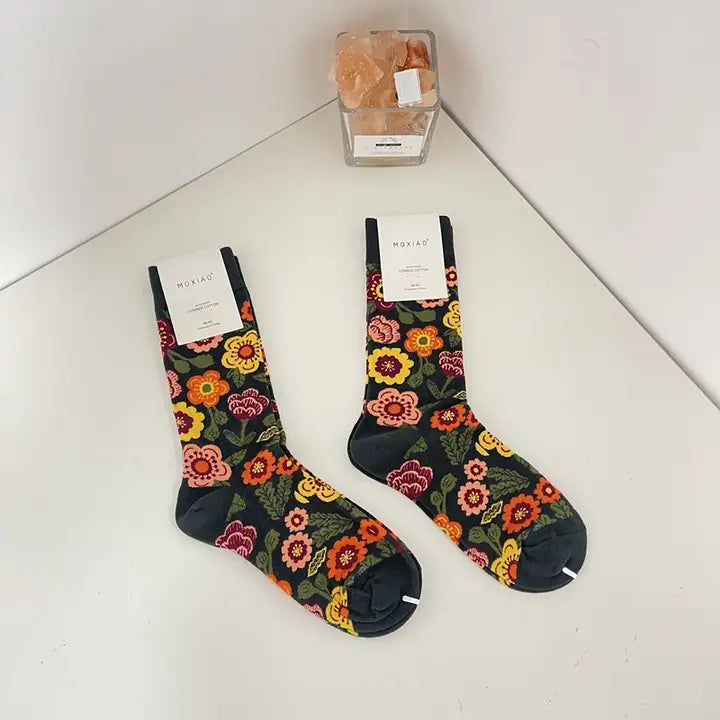 These retro-inspired socks look like they stepped straight out of an oil paintingārich florals, abstract details, and a playful mix of color that instantly elevates any outfit. Artsy without trying too hard, theyāre made for people who like their style with a bit of personality.