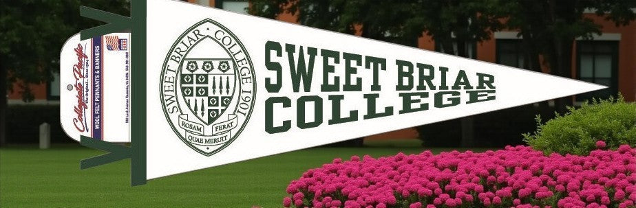 Show off your Vixen pride with this classic 12"x 30" Collegiate Pacific wool felt pennant! Featuring a crisp white background, bold green seal, and Sweet Briar lettering, it's the perfect addition to your dorm, office, or home decor. 🐴💚