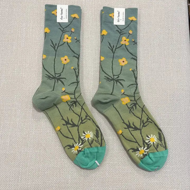 Inspired by painterly florals and natural textures, these daisy socks bring a gallery-worthy touch to everyday style. The muted greens and cheerful blooms make them easy to wear, while the premium knit keeps things comfortable all day long.