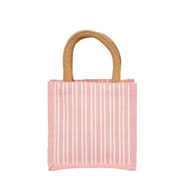 Charming, classic, and perfectly sized—this petite pinstripe gift tote adds a polished touch to any small gift. Sweetly styled with soft pink-and-white stripes, it’s ideal for thoughtful gestures, party favors, or boutique finds.