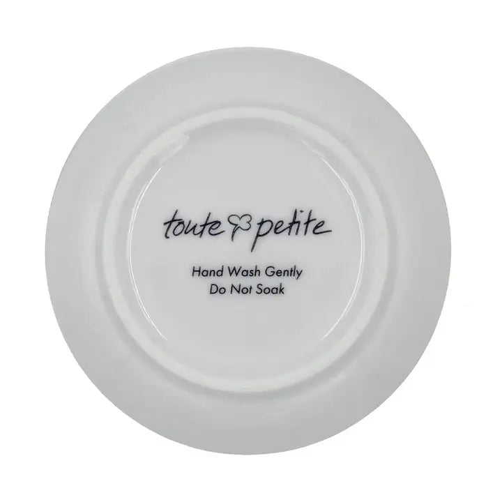 Perfect for adding charm to your bedside or vanity, this handcrafted porcelain ring dish features a delicate Sweet Briar Rose with a bee illustration by alumnaĀ Thomasin Foshay. Its 4" size makes it ideal for holding rings or small keepsakes, while the gold band edge adds an elegant touch.