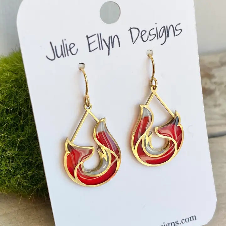 #ShopSweet #SweetBriarCollege #VixenStyle #JulieEllynDesigns #FoxEarrings #HandcraftedJewelry #StainedGlassStyle