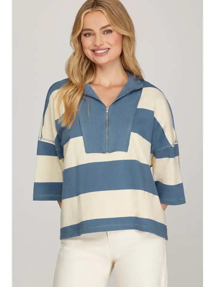 Classic meets comfy. This relaxed-fit rugby-style top brings preppy polish with a laid-back twist. Made from soft, breathable cotton and featuring a flattering half-zip neckline and hidden pockets—yes, pockets!