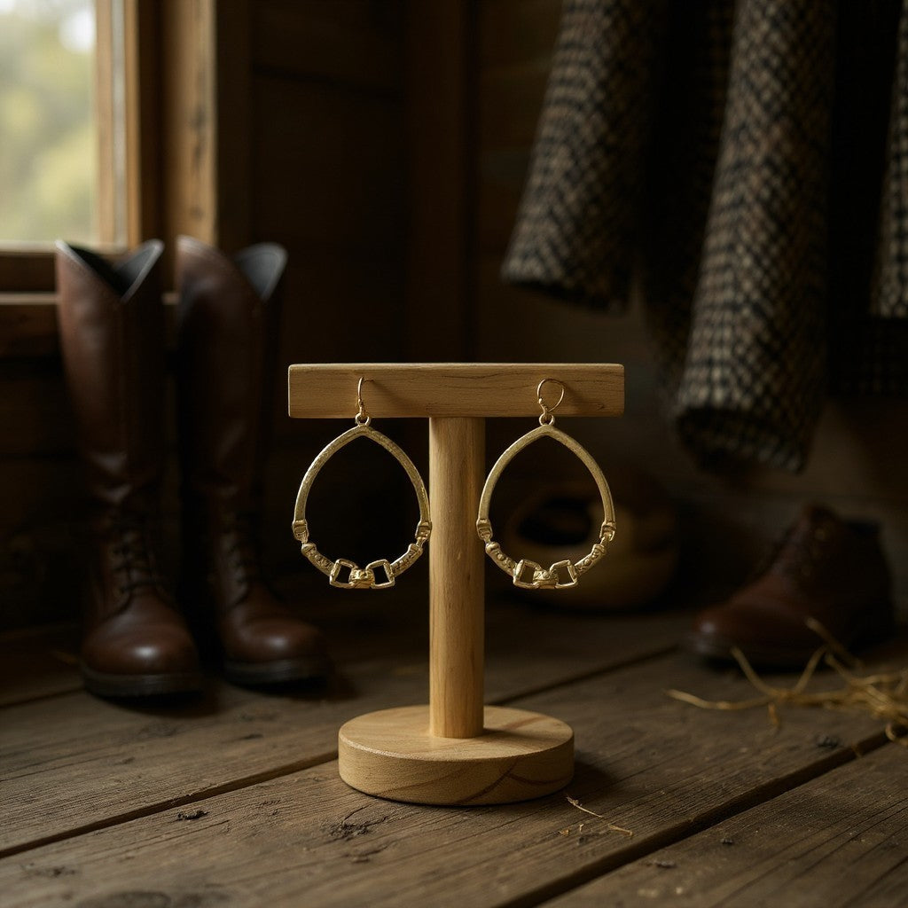 Elevate your style with the timeless elegance of Susan Shaw's Gold Oval Horse Bit Earrings. Featuring a distinctive 1.25" W x 2" L dangle design, these earrings beautifully capture equestrian-inspired sophistication with a modern edge.