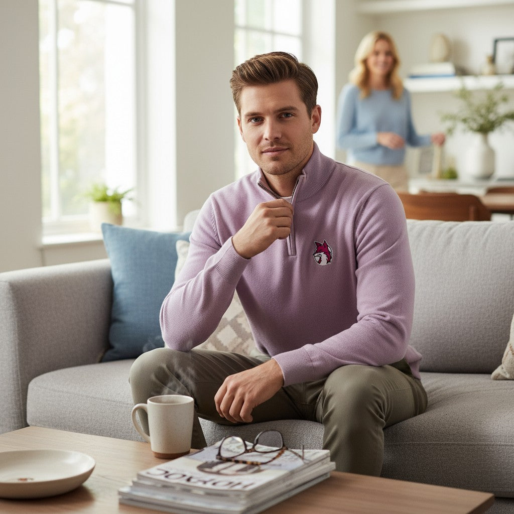 Layer up in Sweet Briar pink pride with this timeless organic cotton half-zip sweater, featuring the Athletic Vixen logo embroidered on the pocket. Perfect for alumni, students, and fans alike, it’s crafted for comfort, quality, and a touch of campus style.