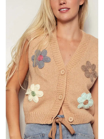 Add a touch of vintage charm to your Sweet Briar style with this Daisy Embroidered Cropped Knit Vest! Featuring soft pastel florals on a warm tan base, this sleeveless cardigan brings a cozy yet playful energy to your look. Perfect for layering over blouses, tees, or dresses — it’s a versatile favorite for every season.
