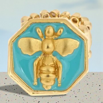 A touch of whimsy meets timeless elegance with the Bumblebee Stretch Ring, featuring a radiant gold bee set against a glossy turquoise enamel backdrop. This one-size-fits-all design brings a pop of color and charm to any look β a perfect nod to Sweet Briarβs vibrant spirit and natural beauty.