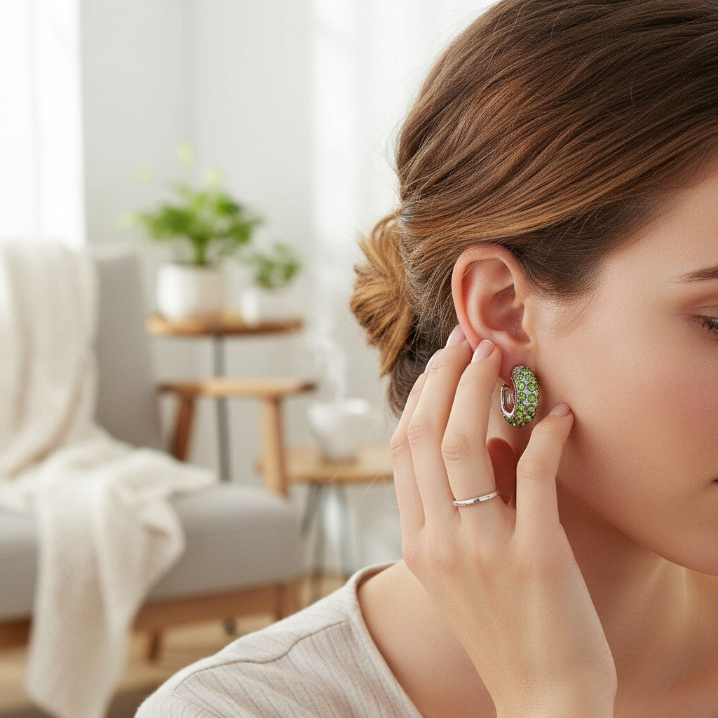 Fresh, radiant, and full of personality β these Green & Silver Huggie Earrings bring the perfect pop of Sweet Briar charm to your everyday look. Crafted with gold-tone metal and shimmering green crystals, they blend elegance with playful sophistication.