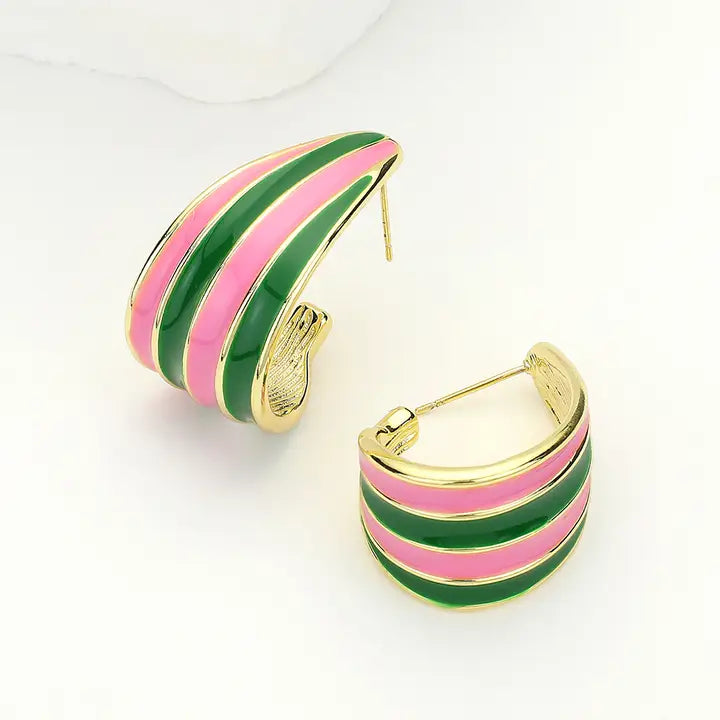 Make a bold statement in Sweet Briar’s signature pink and green! These enamel-striped hoops blend modern flair with timeless sophistication. Finished in 14K gold, they’re perfect for adding a pop of SBC pride to your everyday or special occasion look.