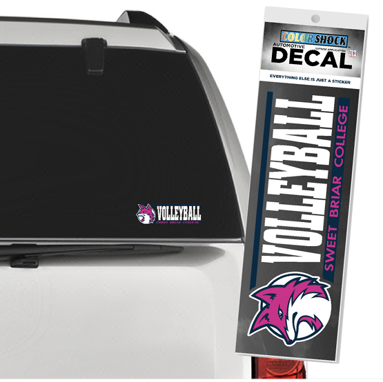 Show your Vixen pride on the go! This Color Shock automotive decal features the Sweet Briar College Volleyball logo with bold lettering in Vixen pink and green. Designed to stand out, itβs perfect for your car window, laptop, or any smooth surface.