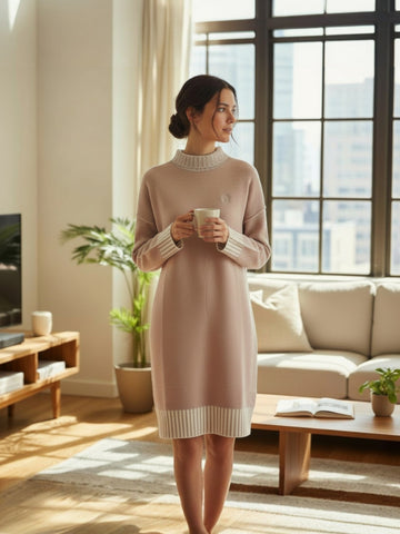 Cozy meets polished in this effortlessly chic sweater dress. With a soft mock-turtleneck, clean solid knit, and flattering stretch, itās your go-to for crisp days on campus or a relaxed weekend in town. The easy silhouette skims beautifully while ribbed details add subtle structureācomfortable enough to lounge, refined enough to layer up and head out.