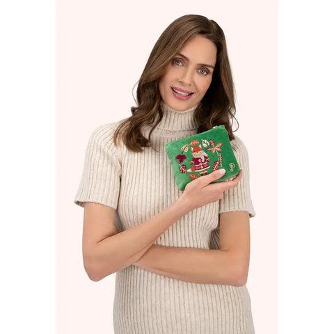 Soft, seasonal, and full of Vixen spirit — this Velvet Embroidered Mini Pouch features our beloved Cozy Fox surrounded by autumn leaves on a lush emerald velvet backdrop. Perfect for keeping your everyday essentials, jewelry, or makeup neatly tucked away in style.